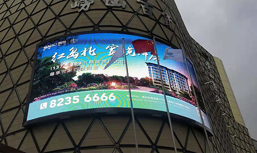 日照青島嶗山百貨室外弧形LED全彩顯示屏案例